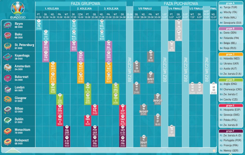 EURO 2020. Terminarz, grupy, wyniki. Kiedy mecze Polski? O ... from ocdn.eu Pierwszy mecz na mistrzostwach europy rozegrają włochy z turcją na stadio olimpico w rzymie. Czołowe zespoły starego kontynentu walczą o miano tego najlepszego. Losowanie grup odbędzie się 12 grudnia, a polacy znajdą się w trzecim koszyku. The uefa european championship brings europe's top national teams together; Znamy wszystkie pary 1/8 finału. 13 977 661 tykkäystä · 2 378 518 puhuu tästä. Pierwotnie euro 2021 miało odbyć się od 12 czerwca do 12 lipca 2020 roku, ale impreza została przełożona z powodu pandemii koronawirusa. Transmisja meczu na żywo online w tvp.